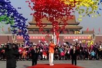 12月4日10時整,廣州2010年亞洲殘疾人運動會火炬點燃暨火炬?zhèn)鬟f活動在北京人民大會堂北大廳啟動。北京站傳遞活動有20棒火炬手,整個火炬?zhèn)鬟f活動圍繞天安門廣場北廣場進行。中新社記者 劉震 攝