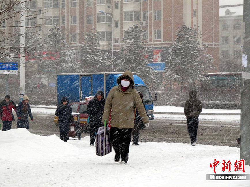 12月10日上午,長春街頭市民冒雪出行。從9日下午開始,吉林省遭遇大到暴雪,截至10日上午8時,長春市農(nóng)安縣降雪量最大,達到9.1毫米,雪深達12厘米。據(jù)悉,大雪致使長春龍嘉國際機場兩度關閉,共有9個進出港航班取消,千余名旅客滯留機場。中央氣象臺12月10日6時繼續(xù)發(fā)布暴雪藍色預警:12月10日08時至11日08時,遼寧東北部、吉林中東部、黑龍江大部等地有大雪(5~9毫米),其中,遼寧東北部的局地、吉林中東部偏北地區(qū)、黑龍江中東部偏南地區(qū)等地有暴雪(10~15毫米)。中新社發(fā) 李彥國 攝
