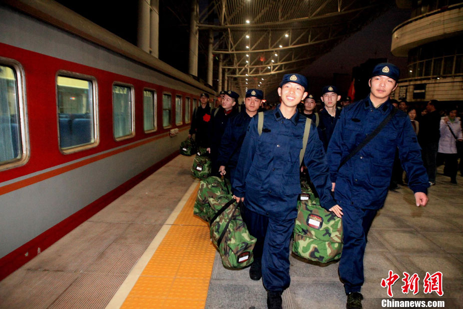 12月10日,北京市在西客站舉行隆重的歡送首批新兵儀式。來(lái)自東城、西城、朝陽(yáng)、海淀等14個(gè)區(qū)的500名新戰(zhàn)士身穿軍裝,胸帶紅花,即將奔赴四川、陜西、湖北、河北等地軍營(yíng)。北京市征召的新兵中,高校畢業(yè)生和在校生超過(guò)了三分之一。
