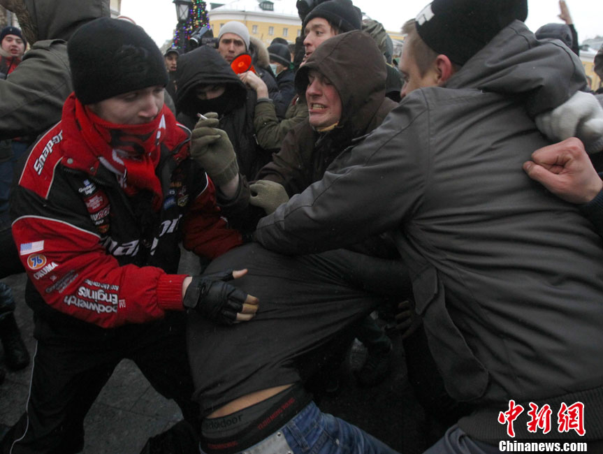 12月11日,俄羅斯首都莫斯科發(fā)生大規(guī)模球迷騷亂。 騷亂直接原因是此前于12月6日發(fā)生在市內(nèi)的一起斯巴達(dá)克俱樂部球迷與高加索人之間的群毆事件。事件導(dǎo)致一名斯巴達(dá)克俱樂部球迷死亡,11日中午,一些球迷聚集到莫斯科市中心馬涅什廣場,聲稱為死亡球迷舉行悼念儀式,從而最終引發(fā)了目前這場有多達(dá)5萬名球迷參與的騷亂。