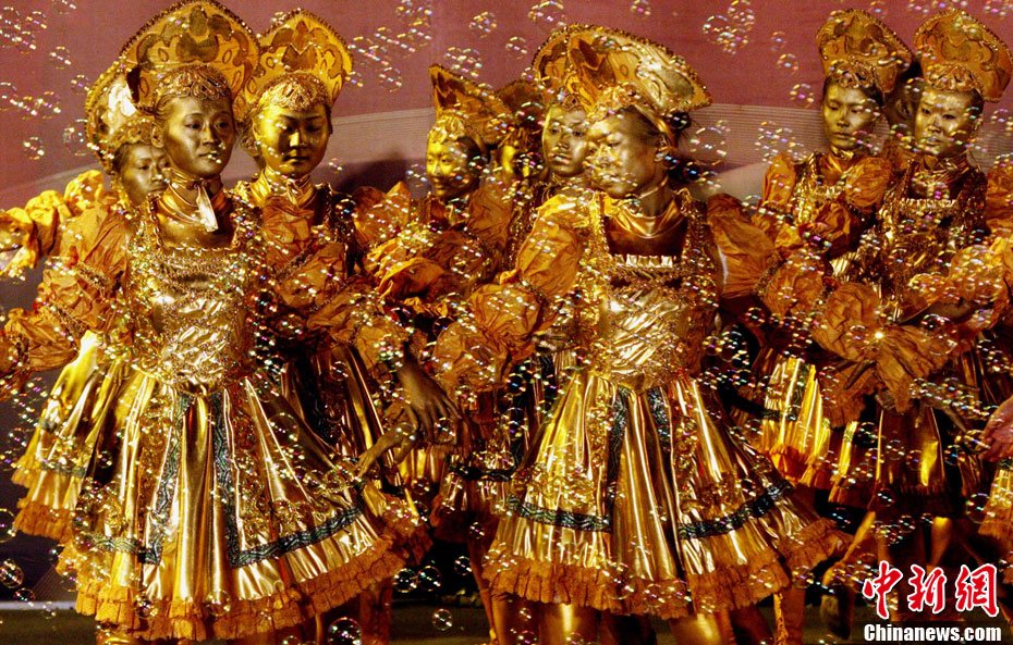 12月12日晚,正在山東棗莊市體育館舉行的2010年第9屆“浩沙杯”中國內(nèi)地萬人健美操大賽舉行總決賽舉行頒獎晚會,來自中國內(nèi)地20個賽區(qū)的194個代表隊1700余名健美操選手參賽,賽事分為少兒組、小學組、中學組、大專學院組、健身俱樂部組、職工組、中老年組、家庭組、自選動作和排舞組共10個組別。其中參賽的最小年齡選手5歲、最大年齡的70歲。圖為在頒獎晚會上獲獎的代表隊展示健美操風采。中新社記者 錢興強 攝