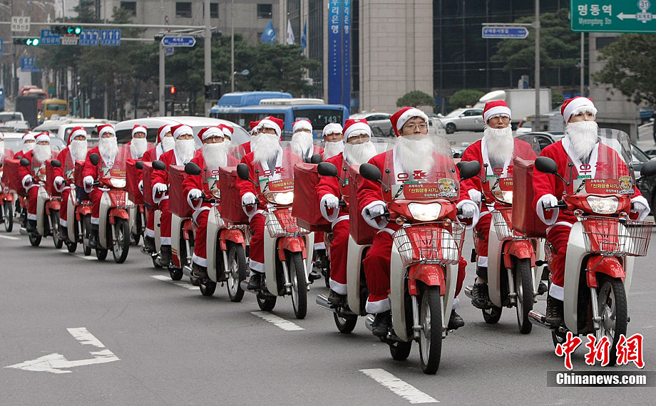 當?shù)貢r間12月13日,韓國首爾中央郵局舉行“圣誕老人 愛的信使”儀式。郵遞員變身“圣誕老人”送郵件,迎接圣誕節(jié)的到來。
