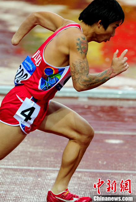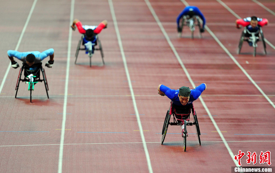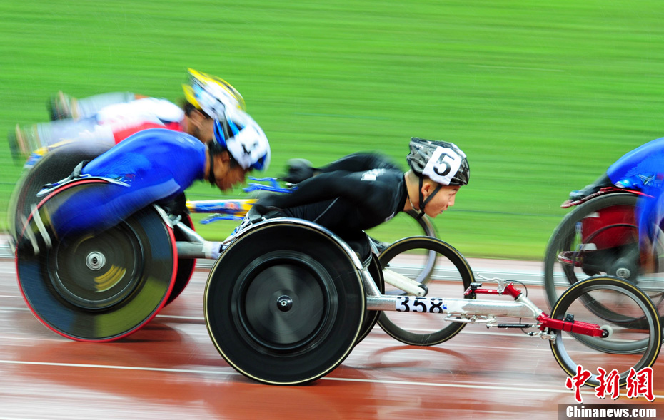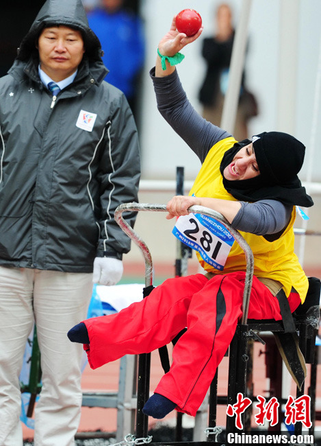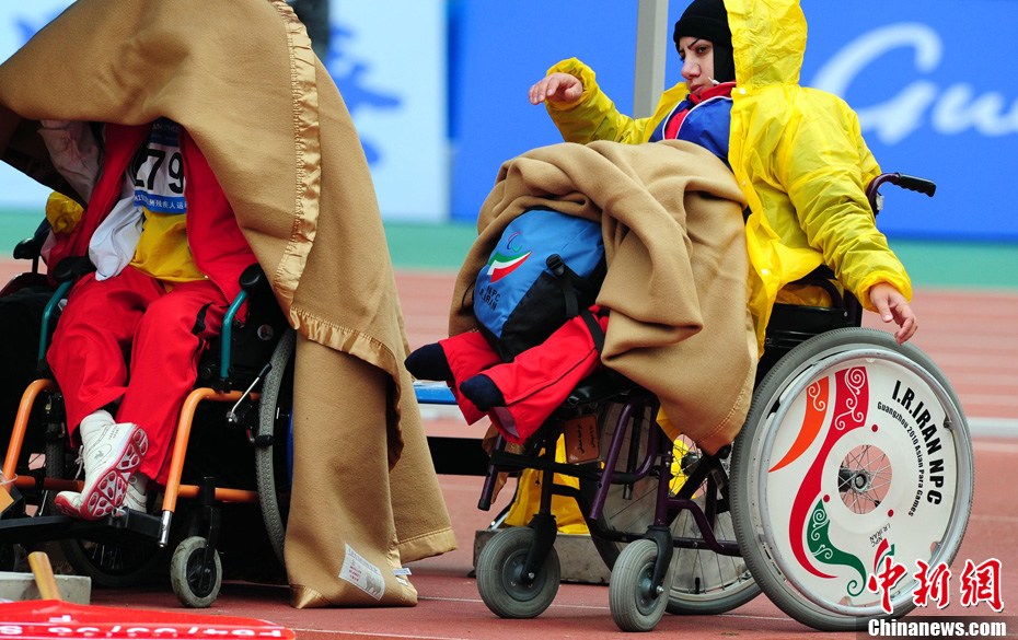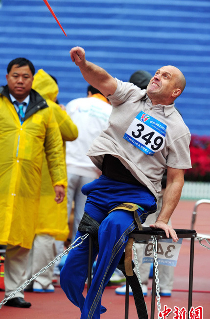 12月16日,廣州氣溫降至2—7度,亞殘運(yùn)會(huì)在低溫氣候條件下進(jìn)行,田徑場(chǎng)上選手不顧寒冷奮力拼搏。圖為中國(guó)選手高長(zhǎng)龍?jiān)贔44級(jí)標(biāo)槍比賽中。中新社記者 陳文 攝