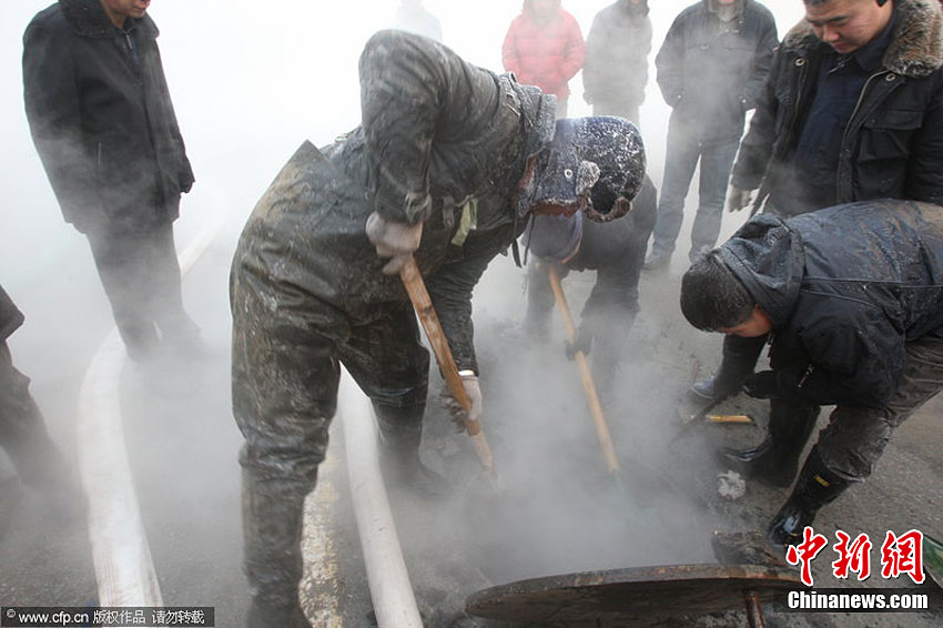 近日,黑龍江省哈爾濱市供熱管線接連爆裂。從12月14日至今,道里區(qū)、道外區(qū)約12萬(wàn)戶居民供暖中斷。華能公司經(jīng)理趙世雷解釋說(shuō),造成這幾次大的停熱事故的主要原因是補(bǔ)償器破裂。18日夜間開(kāi)始,哈爾濱市降下大雪,最低氣溫接近零下30攝氏度。小剛 攝 圖片來(lái)源:CFP視覺(jué)中國(guó)