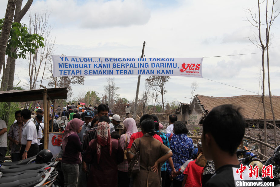 今年10月下旬,位于印尼日惹市的默拉皮火山在沉睡百年后,再次大規(guī)模數(shù)次噴發(fā),并造成300多人罹難、成千上萬人受傷,數(shù)十萬人撤離家園。默拉皮火山11月份停止噴發(fā)后,來自印尼各地的民眾紛紛來此旅游觀光;鹕侥_下一個叫GUNGAND被火山巖漿埋沒的村莊,每天來旅游的人數(shù)逾5000人。圖為當(dāng)?shù)孛癖娫谂恼樟裟。中新社發(fā) 顧時宏 攝