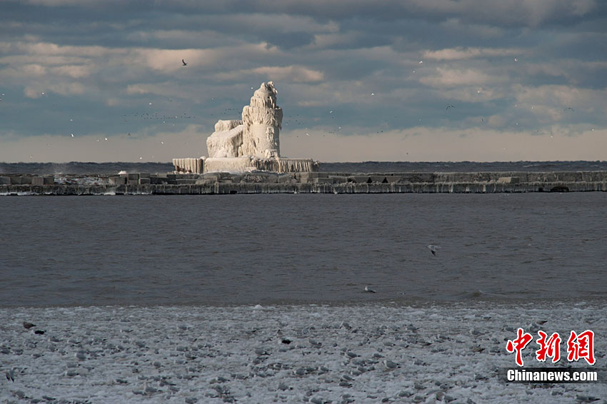 受暴風雪影響,一座位于美國俄亥俄州伊利湖克利夫蘭港的燈塔近日完全被冰層覆蓋,從遠處望去,仿佛一座冰雪雕刻的中世紀古堡。