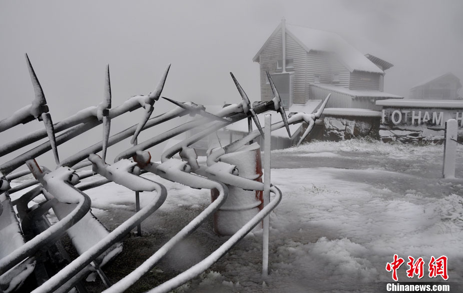 時下正值澳大利亞的夏季,位于澳大利亞東部的新南威爾士州和維多利亞州部分地區(qū)卻遭遇罕見的大雪襲擊,部分地區(qū)的積雪厚度達到10公分。圖為12月19日,在澳大利亞東部地區(qū),大雪將房屋覆蓋。