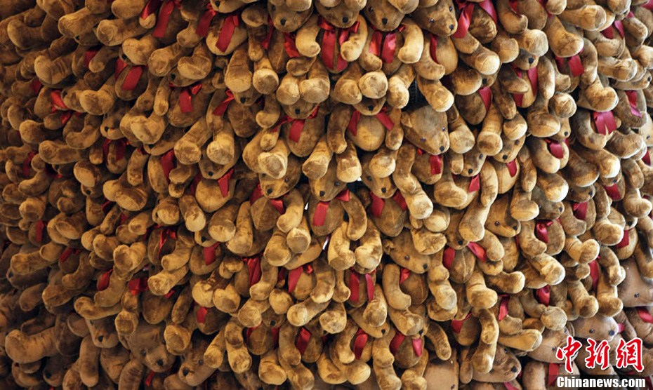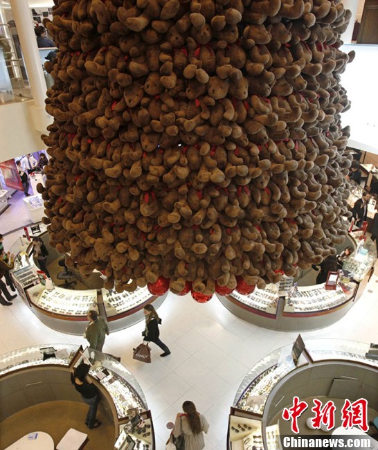 12月20日,在黎巴嫩首都貝魯特一家商場(chǎng),上千只泰迪熊組成的圣誕樹(shù)狀裝飾物懸掛在天花板上。在圣誕即將到來(lái)之際,黎巴嫩首都貝魯特舉行了一項(xiàng)名為“小小的熊,大大的心”的慈善活動(dòng),出售2000只泰迪熊的收益將會(huì)捐給黎巴嫩的自閉癥患者。
