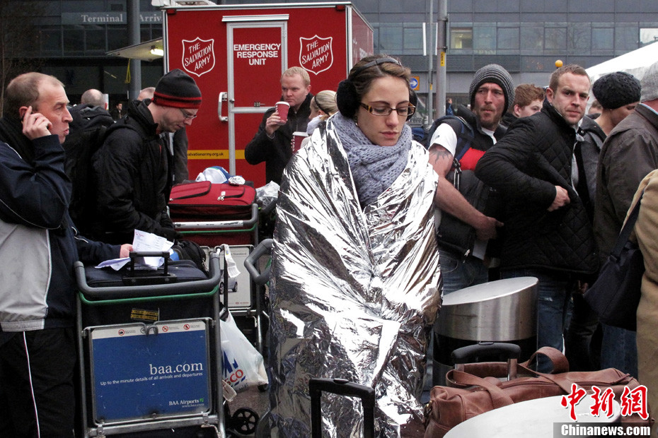 受近日強降雪影響,歐洲多個交通樞紐癱瘓。作為歐洲和美洲大陸間重要航空中轉站的倫敦希思羅機場滯留旅客近萬名。