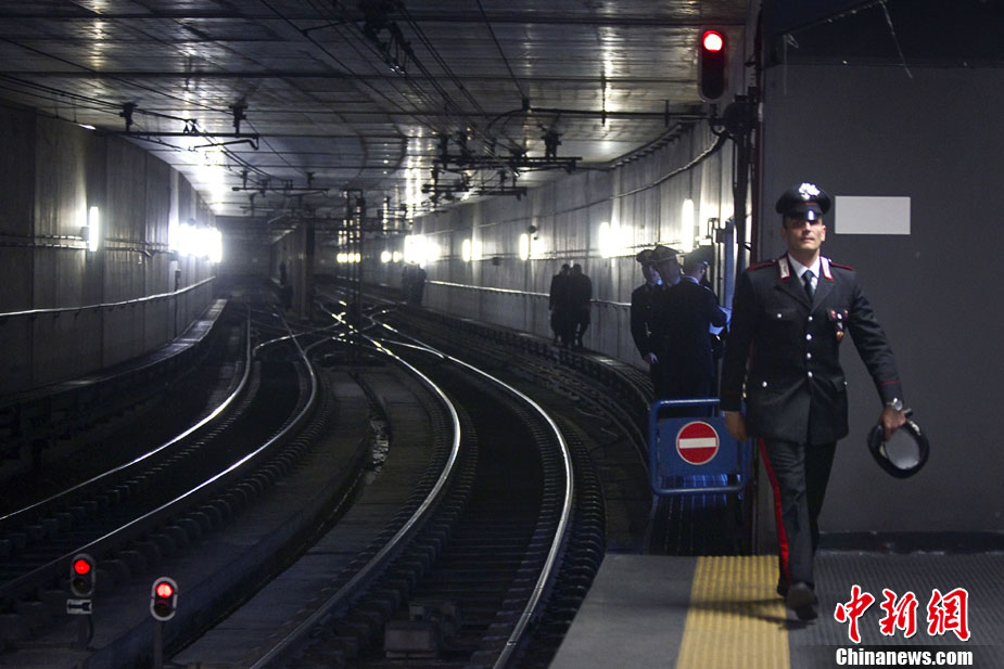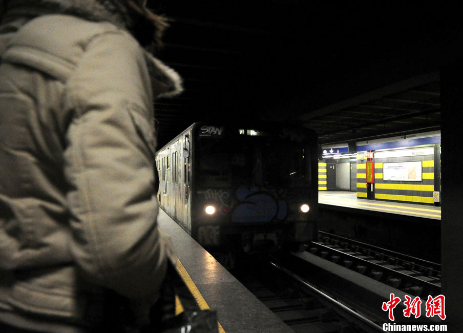 12月21日,意大利羅馬,運輸員工當天在一節(jié)地鐵空車廂里發(fā)現(xiàn)了一個裝有將要爆炸的炸彈包裹,隨后被安全人員拆除。圖為21日,在意大利羅馬,一輛地鐵即將到站。
