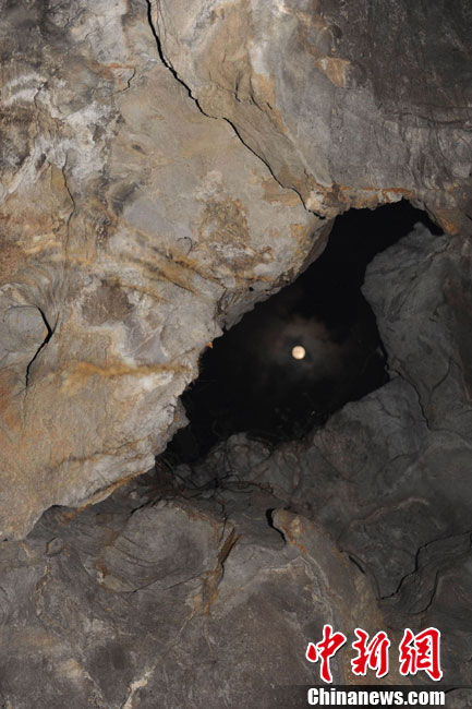 12月22日凌晨,廣東肇慶七星巖“出米洞”景區(qū)冬至日出現“頭上有明月,腳下無暗影”月光垂照山洞的奇趣天文地理景象,吸引了北京、廣州、肇慶三地天文地理氣象科研人員。中國科學院國家天文臺研究員張濟同稱,月亮垂照出米洞奇觀必須符合滿月時分,冬至日,月亮必須到達北緯23°08′上空三個條件。他說,下一次出米洞看月光垂照要等19年,本世紀100年僅可能看到6次這樣的奇觀。圖為冬至日凌晨的端州出米洞上空的月亮。
