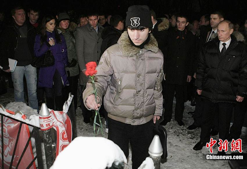 當(dāng)?shù)貢r間12月21日,俄羅斯總理普京與部分球迷一起,來到日前被槍殺的莫斯科斯巴達克足球俱樂部球迷葉戈爾·斯維里多夫的墓前,獻上鮮花表達哀思。12月5日夜間至6日凌晨,一群斯巴達克隊的球迷與一撥來自北高加索地區(qū)的年輕人在莫斯科北部的喀瑯施塔得林蔭道某汽車站附近發(fā)生斗毆,結(jié)果球迷葉戈爾·斯維里多夫被槍殺身亡。