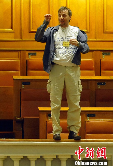 當(dāng)?shù)貢r間12月23日,羅馬尼亞一名男子為抗議殘障兒子的社會福利遭刪減,從國會旁觀席的看臺跳下,震驚了總理及在場議員。不過經(jīng)緊急送醫(yī)后,這名男子脫離了生命危險。據(jù)悉,這名跳樓男子是電視臺的工程人員。