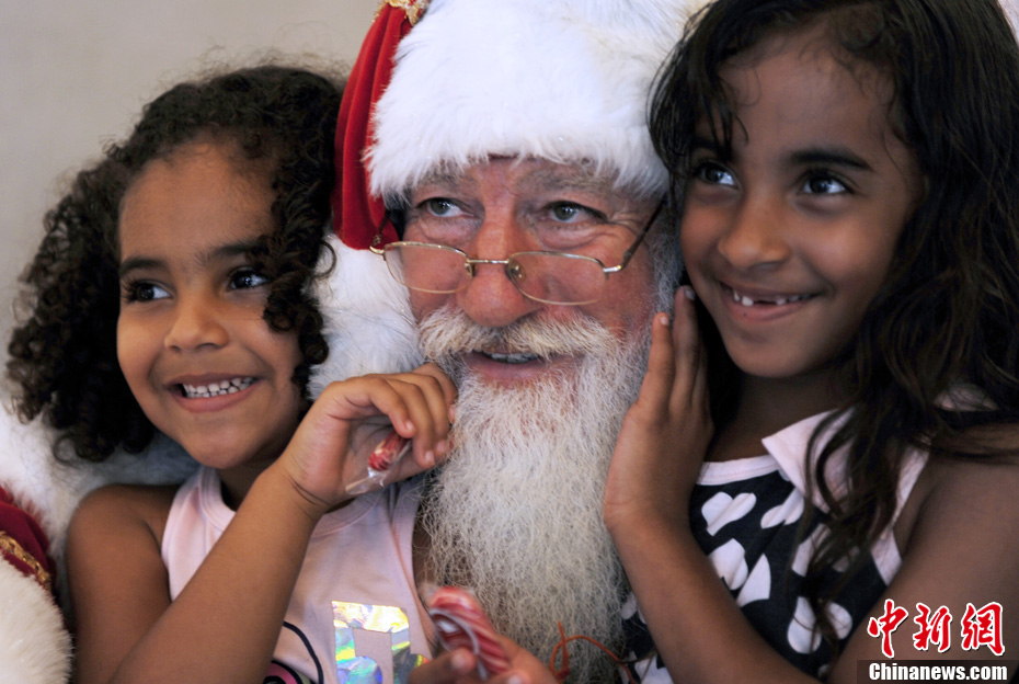 當(dāng)?shù)貢r間12月24日,伊拉克庫爾德人聚集地圣誕老人為孩子們送去歡樂。