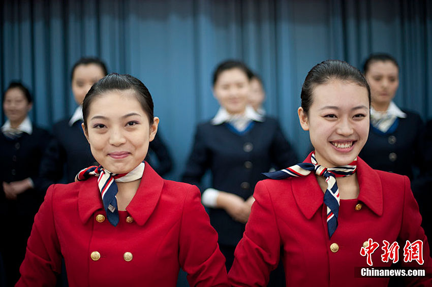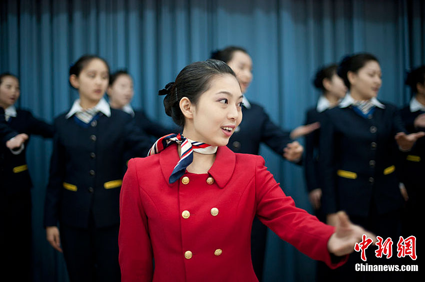 再過兩周,北京地區(qū)將較全國提前10天開始進(jìn)入春運(yùn)階段。為迎接春運(yùn),北京地區(qū)加開了至重慶、成都等地的動(dòng)車組。24日,新一批動(dòng)車組乘務(wù)員在石家莊接受完封閉培訓(xùn),將在春運(yùn)前走上崗位?崴瓶战愕膭(dòng)車組女乘務(wù)員,一顰一笑皆有規(guī)矩,給旅客帶來良好感覺的背后,是艱苦的訓(xùn)練。張沫 攝 圖片來源:CFP視覺中國