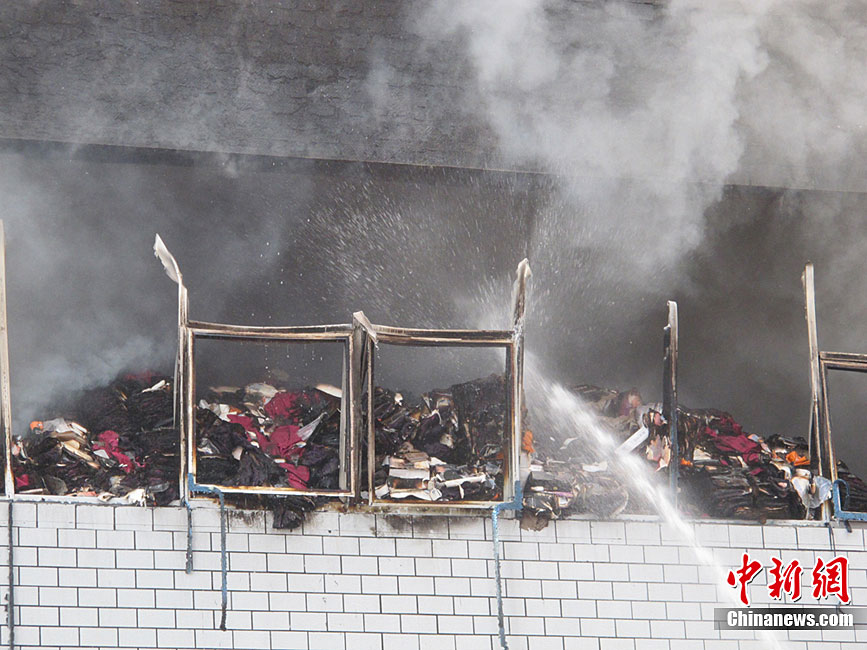12月28日上午10時50分許,浙江省義烏市知名企業(yè)浪莎集團倉庫樓發(fā)生火災(zāi)。因火勢較大,金華消防總共出動了三十幾輛消防車參與救火,倉庫內(nèi)9名工作人員均已安全疏散,確定無人員傷亡情況。張茵 攝