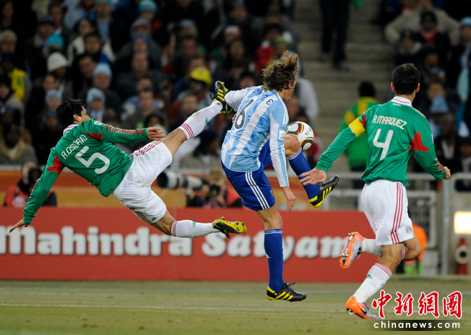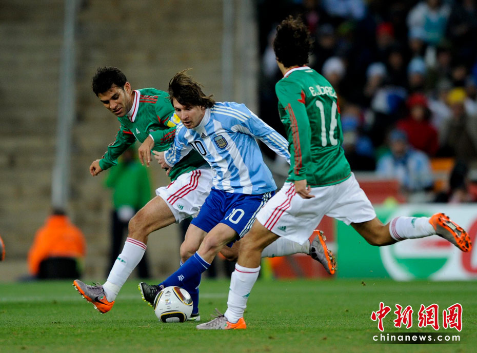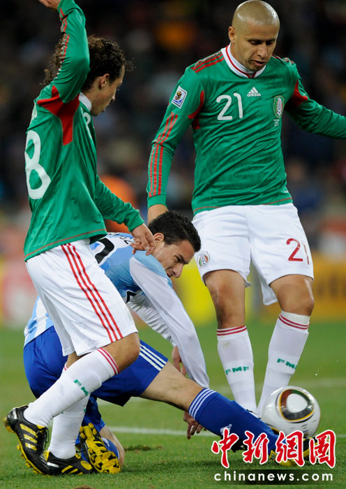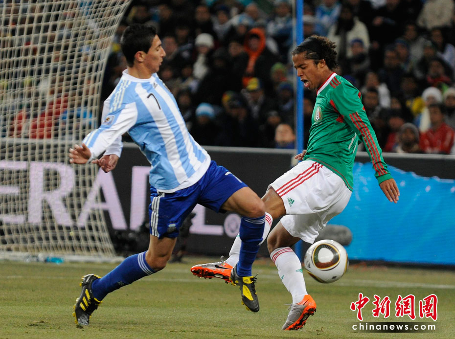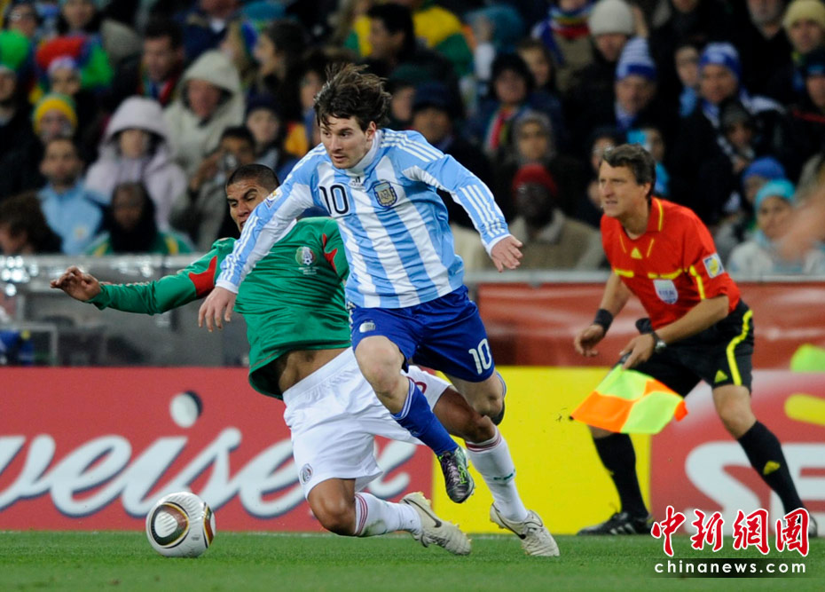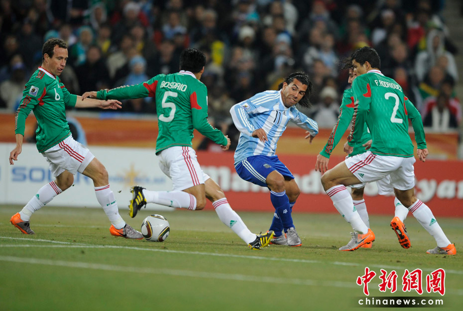 北京時(shí)間6月28日凌晨2:30,南非世界杯1/8決賽再賽一場(chǎng),阿根廷隊(duì)在約翰內(nèi)斯堡的足球城球場(chǎng)迎來(lái)了墨西哥隊(duì)。憑借特維斯一個(gè)明顯越位進(jìn)球首開(kāi)紀(jì)錄,隨后伊瓜因和特維斯各進(jìn)一球,以3-1擊敗墨西哥,晉級(jí)八強(qiáng)。 中新社記者 廖攀 攝