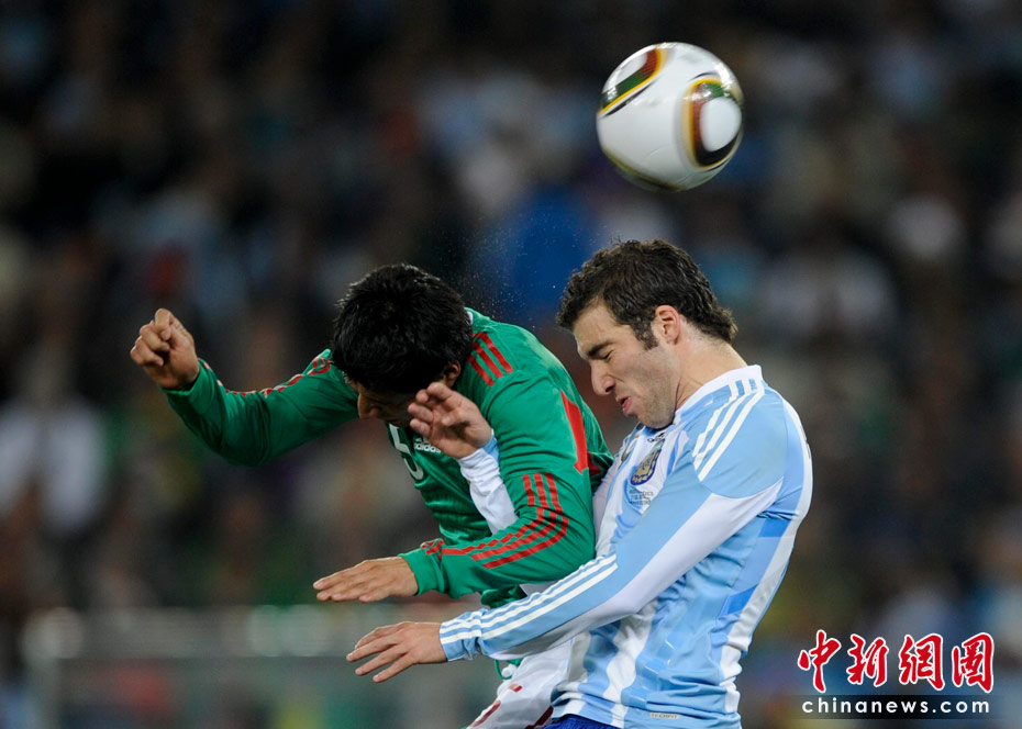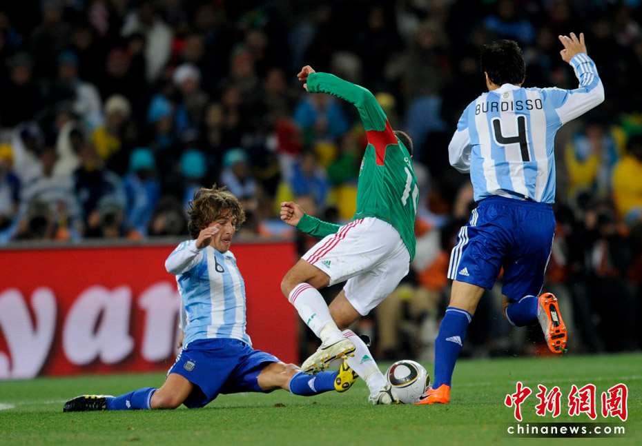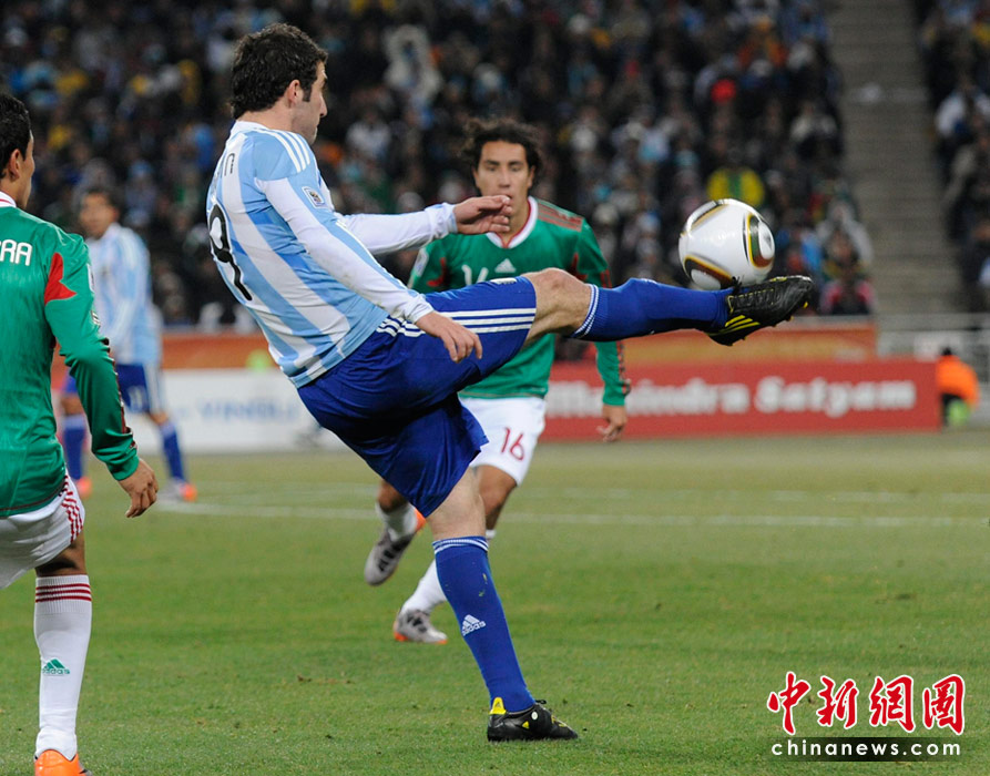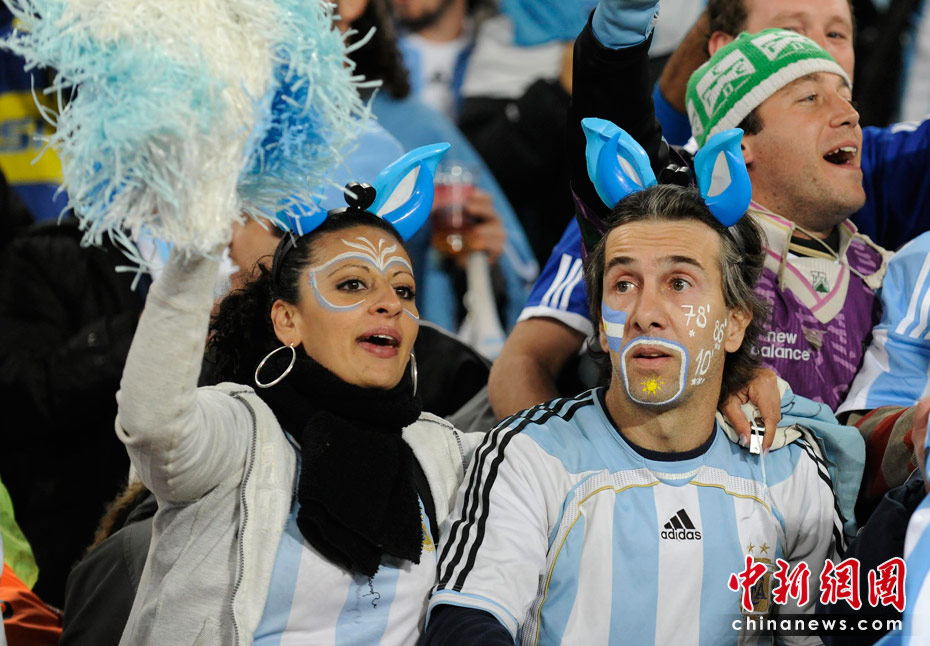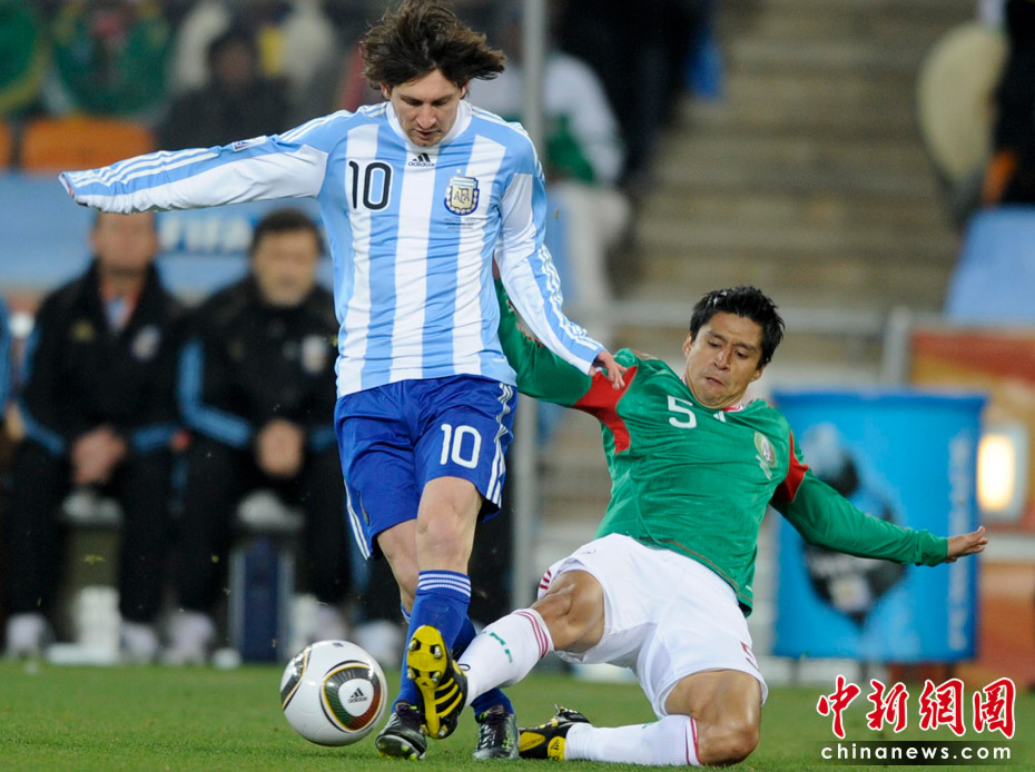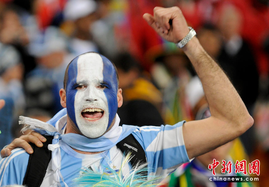 北京時(shí)間6月28日凌晨2:30,南非世界杯1/8決賽再賽一場(chǎng),阿根廷隊(duì)在約翰內(nèi)斯堡的足球城球場(chǎng)迎來(lái)了墨西哥隊(duì)。憑借特維斯一個(gè)明顯越位進(jìn)球首開(kāi)紀(jì)錄,隨后伊瓜因和特維斯各進(jìn)一球,以3-1擊敗墨西哥,晉級(jí)八強(qiáng)。 中新社記者 廖攀 攝