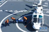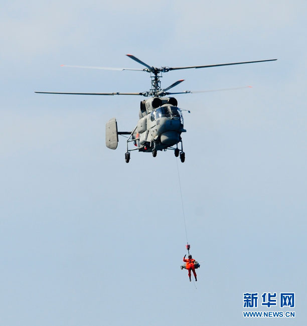 搜救直升機營救“落水人員”。孫利 攝 圖片來源:新華網(wǎng)