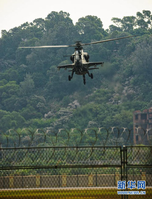 2012年11月11日,國產(chǎn)武直10武裝直升機(jī)在珠海三灶機(jī)場進(jìn)行飛行訓(xùn)練。當(dāng)日,我國自主研制生產(chǎn)的武直10武裝直升機(jī)在珠海三灶機(jī)場進(jìn)行了約20分鐘的適應(yīng)性飛行訓(xùn)練,做出倒飛、萊維斯曼機(jī)動(dòng)、高速大角度俯沖、低空小半徑盤旋等動(dòng)作,展現(xiàn)出其優(yōu)異性能,引來航展現(xiàn)場觀眾頻頻喝彩。楊光 攝 圖片來源:新華網(wǎng)