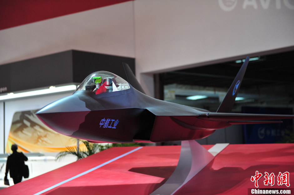 11月13日上午,第九屆中國(guó)國(guó)際航空航天博覽會(huì)在廣東珠海開幕,一架中國(guó)先進(jìn)戰(zhàn)斗機(jī)概念模型在中航工業(yè)展臺(tái)亮相,從外形上看,與前不久成功試飛的殲31相似,備受關(guān)注。中新社發(fā) 柯小軍 攝