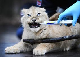 小獅子接種防疫針 表情惹人愛
