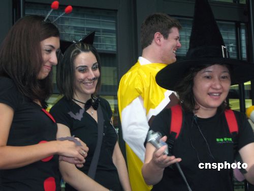 西方社會傳統(tǒng)的萬圣節(jié)將至,10月30日,在臺北市著名百貨公司新光三越店門口,時(shí)尚一族提前秀起了“鬼臉”。中新社發(fā) 王林 攝