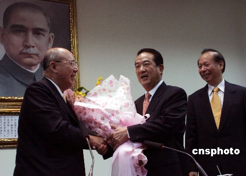 11月14日,中國國民黨主席吳伯雄(左一)和親民黨主席宋楚瑜(右二)在臺北一起舉行記者會,公布列國民黨34席不分區(qū)“立委”提名名單的4名親民黨成員,并介紹他們的履歷。宋楚瑜說,親民黨另有6位成員獲國親推薦,以國民黨名義參選區(qū)域“立委”選舉。這是宋楚瑜近一年來首次與媒體見面。中新社發(fā) 黃少華 攝