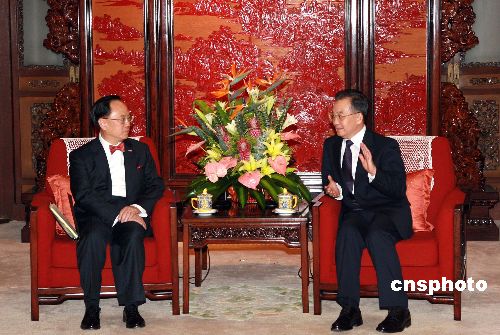 十一月二十三日,國務(wù)院總理溫家寶在北京會見來京述職的香港特別行政區(qū)行政長官曾蔭權(quán)。中新社發(fā) 廖文靜 攝