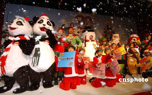 11月27日,香港海洋公園宣布,在12月15日至明年1月1日期間,將推出包括“冰雪世界”、“環(huán)球圣誕村”、“滿場驚喜玩之不盡”、“大玩特玩”四個主題景點,為市民及游客帶來白色的圣誕 。圖為當日小朋友們、“大熊貓”及雪人在漫天飄雪的白色世界迎接即將到來的圣誕節(jié)。中新社發(fā) 蔡蔓莉 攝