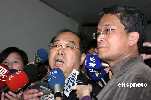 十二月二十六日,為配合臺(tái)灣當(dāng)局的一階段領(lǐng)投票規(guī)劃,“中央選舉委員會(huì)”在臺(tái)北舉行會(huì)議,以六比三通過(guò)修改各級(jí)選委會(huì)組織規(guī)程。圖為國(guó)民黨、親民黨推薦的“中選會(huì)”委員劉光華、趙叔鍵(右)接受記者采訪,反對(duì)行政干預(yù),提岀一階段、兩階段折衷方案。中新社發(fā) 董會(huì)峰 攝