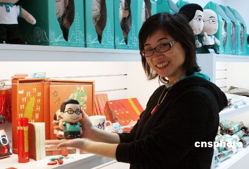 3月10日,有臺北“長仔工坊”業(yè)者展示此次民進黨候選人謝長廷、蘇貞昌的創(chuàng)意公仔商品。業(yè)者稱,此番展示的商品,有T恤、手表、文具、飾品、鉛筆、杯墊、鑰匙圈、隨手杯、手機吊飾等,用創(chuàng)意設計手法,呈現(xiàn)謝、蘇的特質(zhì)、形象,展現(xiàn)臺灣的選舉文化。中新社發(fā) 黃少華 攝