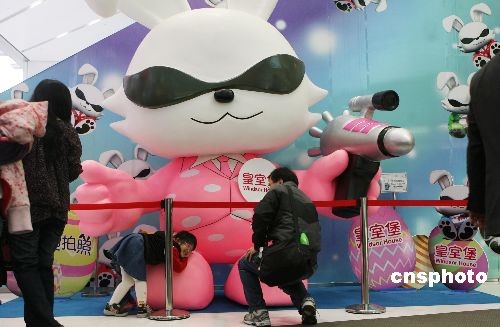 三月二十三日,一名小朋友與香港一商場內的巨型復活兔合影留念。復活節(jié)期間,香港眾多市民通過購物、旅游等休閑方式,歡度假期。中新社發(fā) 武仲林 攝