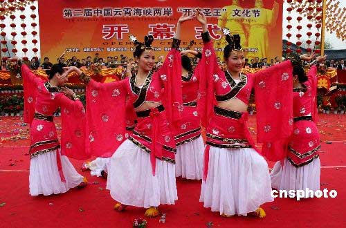 三月二十八日上午,第二屆中國云霄海峽兩岸“開漳圣王”文化節(jié)在福建漳州云霄縣將軍山開幕,古典舞、舞龍舞獅等民俗文化助陣表演。來自美國、澳大利亞、馬來西亞、南非、泰國、新西蘭、新加坡以及中國香港和臺灣等十余個(gè)國家和地區(qū)的海內(nèi)外嘉賓八百多人與會。中新社發(fā) 沈逸亭 攝