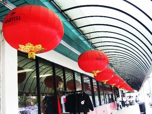 當?shù)貢r間4月6日,洛杉磯華人區(qū)的各家商店掛起了大紅燈籠,迎接4月9日北京奧運圣火傳遞到舊金山。金立冬 攝