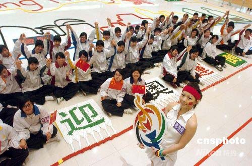 四月二十九日,香港將軍澳東港城商場為迎接北京奧運(yùn)的來臨,特別舉行“骨牌迎奧運(yùn)倒數(shù)一百天”活動(dòng),以十萬塊骨牌砌成面積達(dá)三千平方呎的“奧運(yùn)之城”。圖為參與堆砌骨牌活動(dòng)的學(xué)生在推倒骨牌后雀躍留影。中新社發(fā) 鄧慶樂 攝