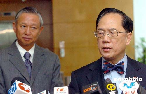 五月十三日,香港特別行政區(qū)行政長官曾蔭權(quán)在香港會見傳媒,慰問四川大地震災(zāi)民,并表示特區(qū)政府會盡力支援及配合,將兵分三路協(xié)助中央救災(zāi)。中新社發(fā) 鄧慶樂 攝