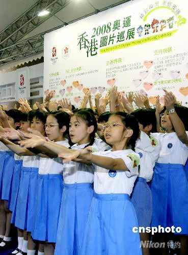 五月二十五日,“萬眾一心 眾志成城 為四川災(zāi)區(qū)人民獻(xiàn)愛心義演”在香港時代廣場舉行,香港數(shù)所學(xué)校和幼稚園的小朋友演唱“我愛中華”、“承諾”等歌曲為四川地震災(zāi)區(qū)人民加油。圖為學(xué)生演唱由劉德華專為這次地震作詞、黃家駒作曲的賑災(zāi)歌“承諾”。中新社發(fā) 王麗南 攝
