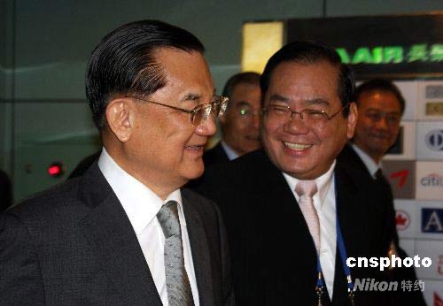 圖:連戰(zhàn)前往桃園機(jī)場(chǎng)為吳伯雄一行送行