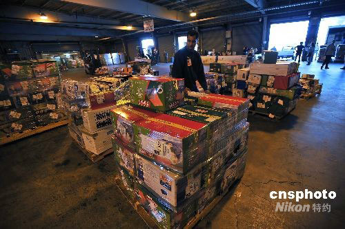 當(dāng)?shù)貢r(shí)間5月28日,美國(guó)硅谷華人工程師將向四川地震災(zāi)區(qū)捐贈(zèng)的2000多頂帳篷、1000多個(gè)睡袋等賑災(zāi)物資交付美國(guó)聯(lián)合航空公司,這批賑災(zāi)物資將先運(yùn)往北京首都國(guó)際機(jī)場(chǎng),然后再轉(zhuǎn)運(yùn)四川災(zāi)區(qū)。中新社發(fā) 陳剛 攝