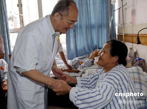 六月四日,國務院僑辦副主任趙陽到廣州華僑醫(yī)院,看望正在這里接受治療的四川地震受傷者,并祝他們早日康復。中新社發(fā) 劉衛(wèi)勇 攝