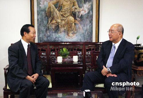 7月8日,海峽兩岸關(guān)系協(xié)會副會長王在希在臺北與中國國民黨主席吳伯雄會見。吳伯雄表示,7月4日開始的兩岸周末包機(jī)以及大陸居民赴臺旅游,都很重要。希望彼此的交流有助于促進(jìn)兩岸的了解和友誼。中新社發(fā) 黃少華 攝