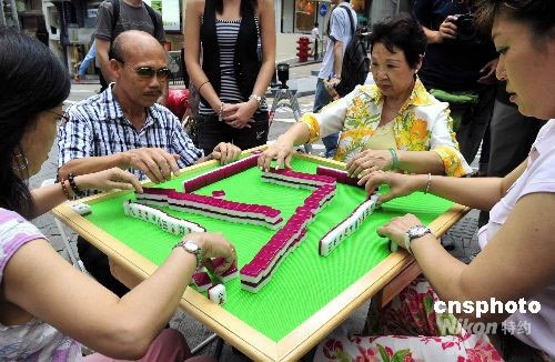 九月五日,首屆“世界麻將大賽”冠軍許宗澧在記者會上與其它選手比較高下。第二屆“世界麻將大賽”將于九月十九日至二十一日在澳門舉行,提供麻將競賽有史以來的最高額獎(jiǎng)金一百萬美元。中新社發(fā) 譚達(dá)明 攝