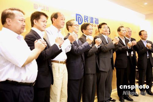 二〇〇八年香港立法會選舉已圓滿結(jié)束,民建聯(lián)在地區(qū)直選取得九席,功能界別四席,合共取得十三席,圖為民建聯(lián)當選人九月八日上午與媒體見面。中新社發(fā) 張勤 攝