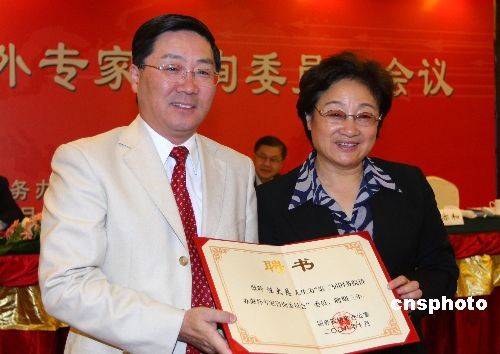 10月27日,第二屆國務(wù)院僑辦海外專家咨詢委員會(huì)會(huì)議在北京舉行。國務(wù)院僑務(wù)辦公室主任李海峰向新任的38名海外專家咨詢委員會(huì)委員頒發(fā)聘書。中新社發(fā) 廖文靜 攝