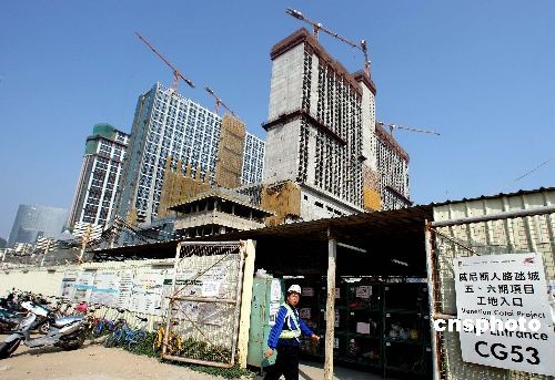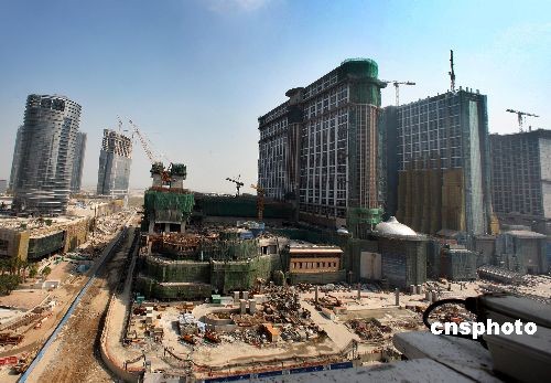 受世界金融海嘯的嚴重沖擊,澳門威尼斯人“金光大道五、六期項目”已經(jīng)全面停工,包括規(guī)模宏大的喜來登酒店在內(nèi)的多所大型建筑工地只有少量工人善后。中新社發(fā) 任晨鳴 攝