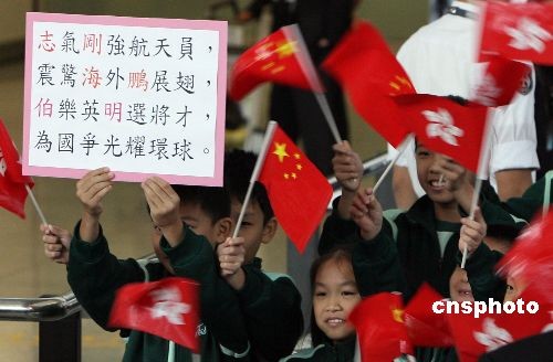 十二月五日,“神舟七號(hào)”載人航天飛行代表團(tuán)抵達(dá)香港國(guó)際機(jī)場(chǎng),展開為期四天的訪港行程。四十多人的代表團(tuán)包括團(tuán)長(zhǎng)張建啟、航天員翟志剛、劉伯明和景海鵬,以及負(fù)責(zé)這次載人航天工程的各主要系統(tǒng)指揮或設(shè)計(jì)師。中新社發(fā) 武仲林 攝