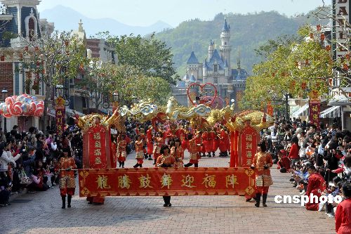 一月十五日,香港迪斯尼樂園為迎接農歷新年來臨,特別舉行〝福到滿城賀金牛〞大型巡游。中新社發(fā) 鄧慶樂 攝