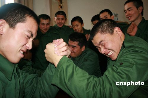 12月20日是穆斯林群眾的傳統(tǒng)節(jié)日古爾邦節(jié)。駐守在中哈邊境的武警新疆博爾塔拉蒙古自治州邊防支隊(duì)新兵連組織新入伍的少數(shù)民族戰(zhàn)士開展了豐富多彩的文藝節(jié)目,官兵們載歌載舞度過一個(gè)愉快的節(jié)日。中新社發(fā) 王考華 攝