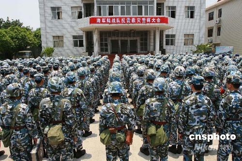 圖:中國海軍陸戰(zhàn)隊舉行抗震救災(zāi)誓師大會